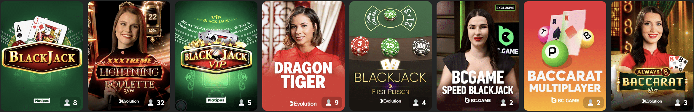 Das Live-Casino von BC Game überzeugt ebenfalls durch eine riesige Auswahl. Renommierte Spieleentwickler wie Evolution und Ezugi sorgen für einen hohen Qualitätsstandard. Dadurch wird eine nahtlose Übertragung direkt vom Tisch mit Live-Dealer sichergestellt. Somit bietet Ihnen das Online-Casino ein authentisches Casinoerlebnis, ohne das Haus zu verlassen.